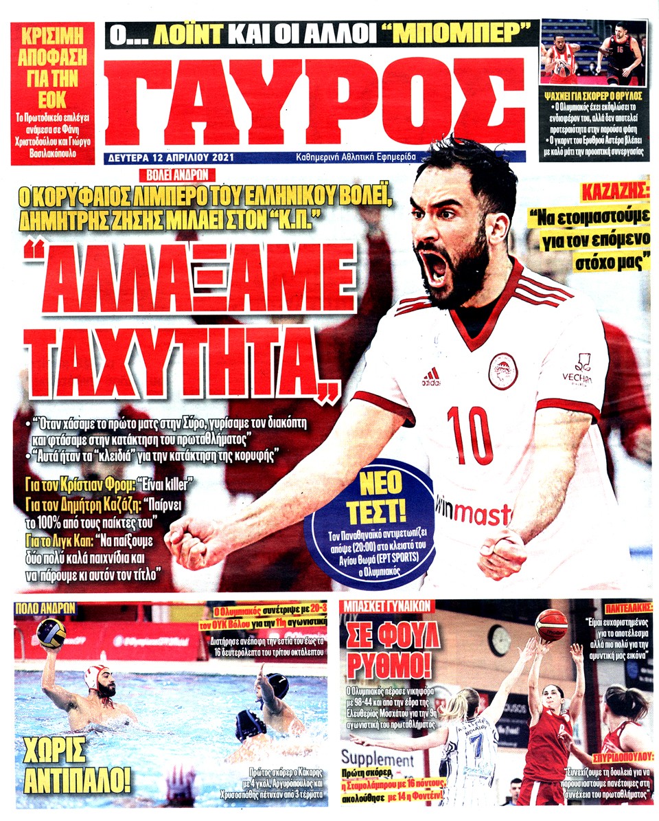 ΠΡΩΤΑΘΛΗΤΗΣ - 12 Απριλίου 2021