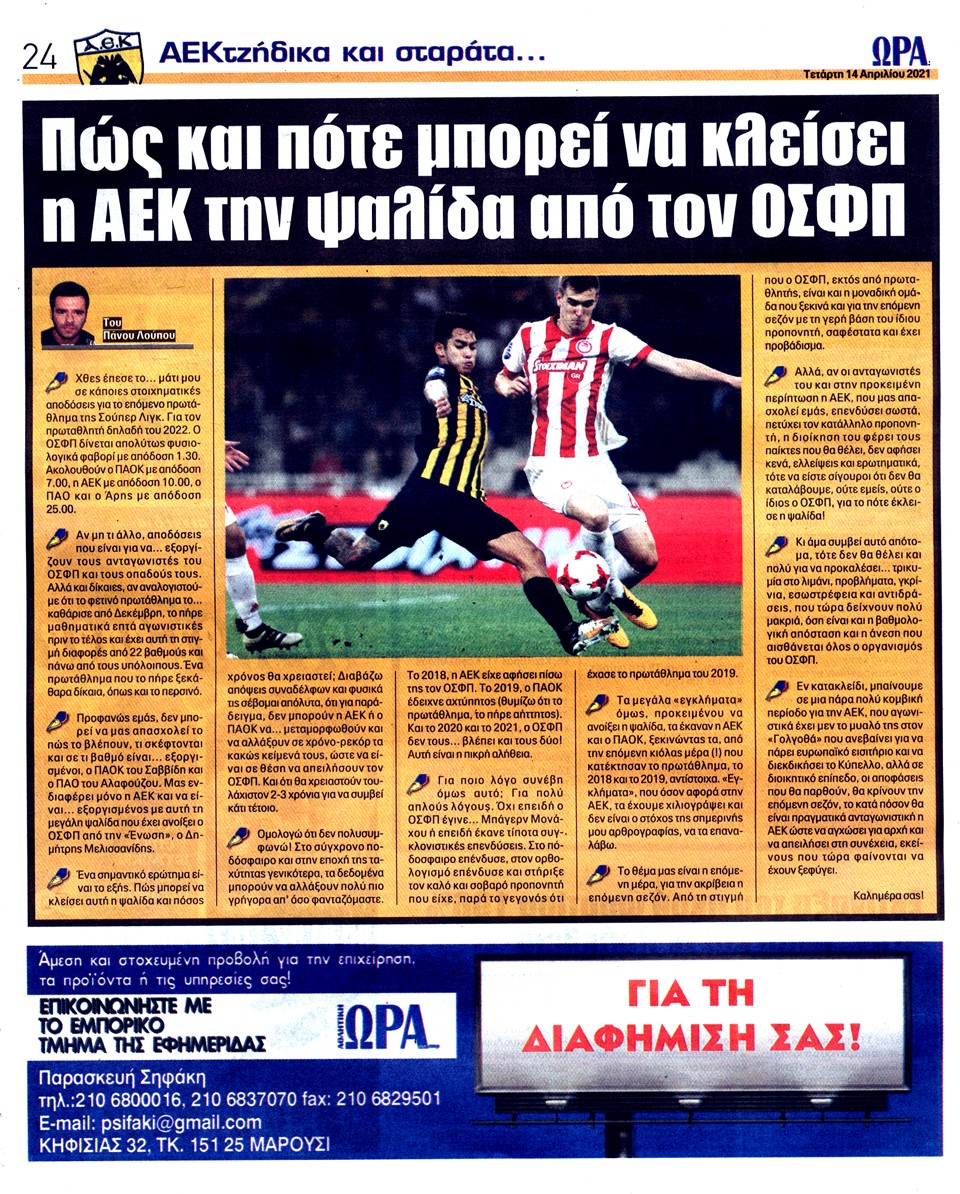 ΑΘΛΗΤΙΚΗ ΩΡΑ ΤΩΝ ΣΠΟΡ - 14 Απριλίου 2021