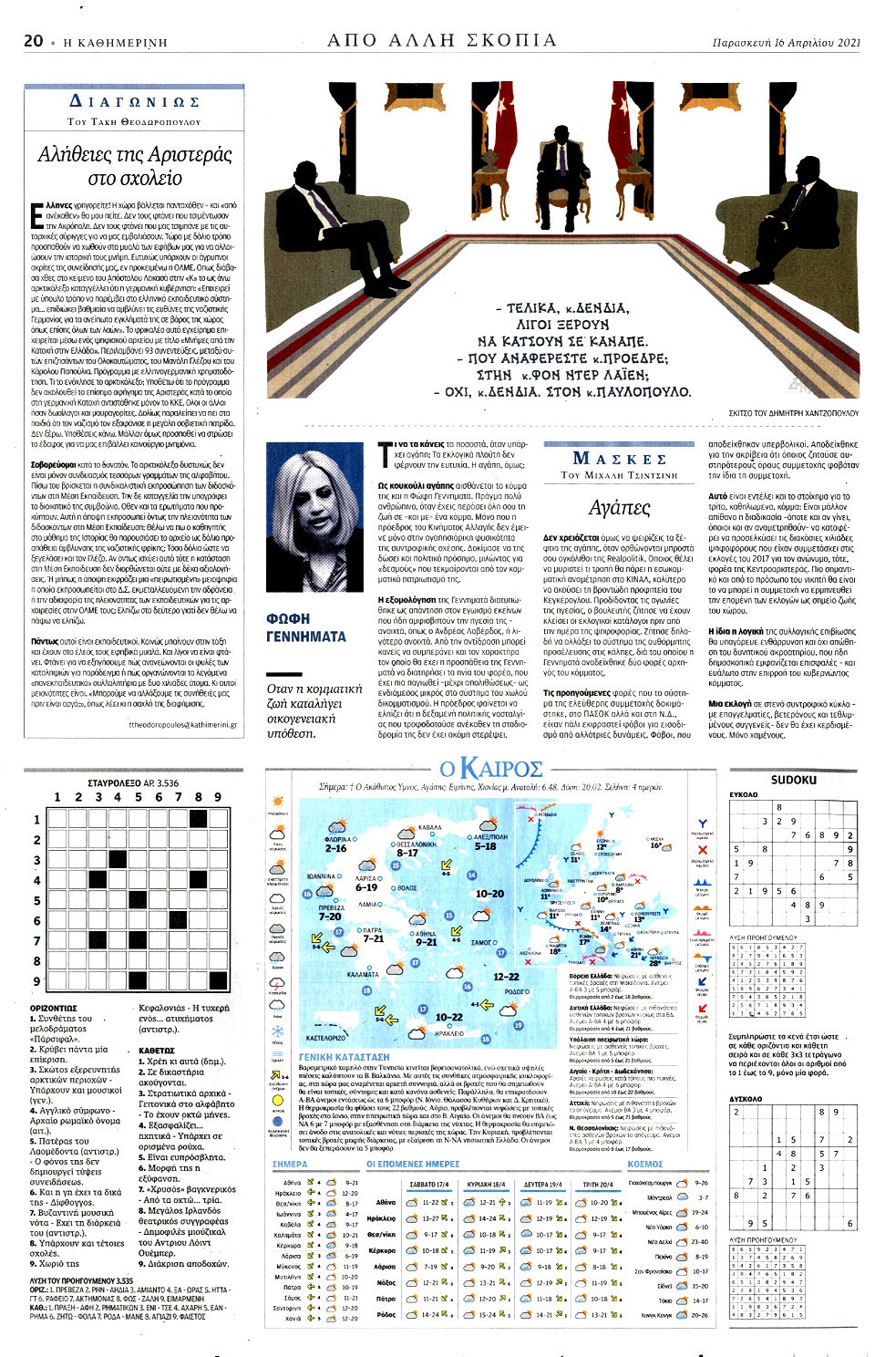 ΚΑΘΗΜΕΡΙΝΗ - 16 Απριλίου 2021