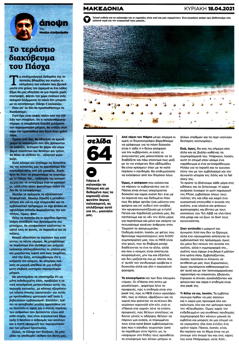 ΜΑΚΕΔΟΝΙΑ ΤΗΣ ΚΥΡΙΑΚΗΣ - 18 Απριλίου 2021