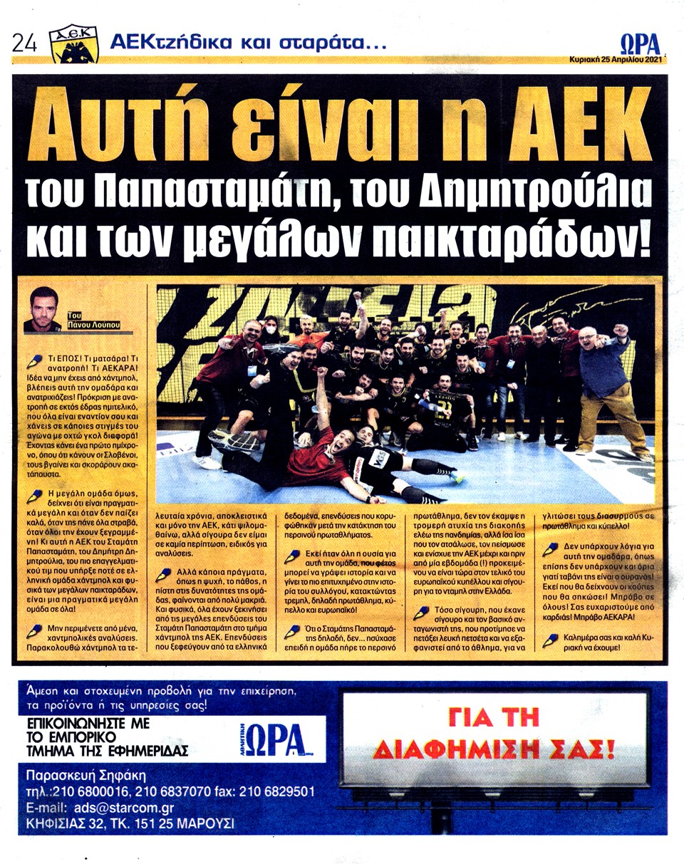 ΑΘΛΗΤΙΚΗ ΩΡΑ ΤΩΝ ΣΠΟΡ - 25 Απριλίου 2021