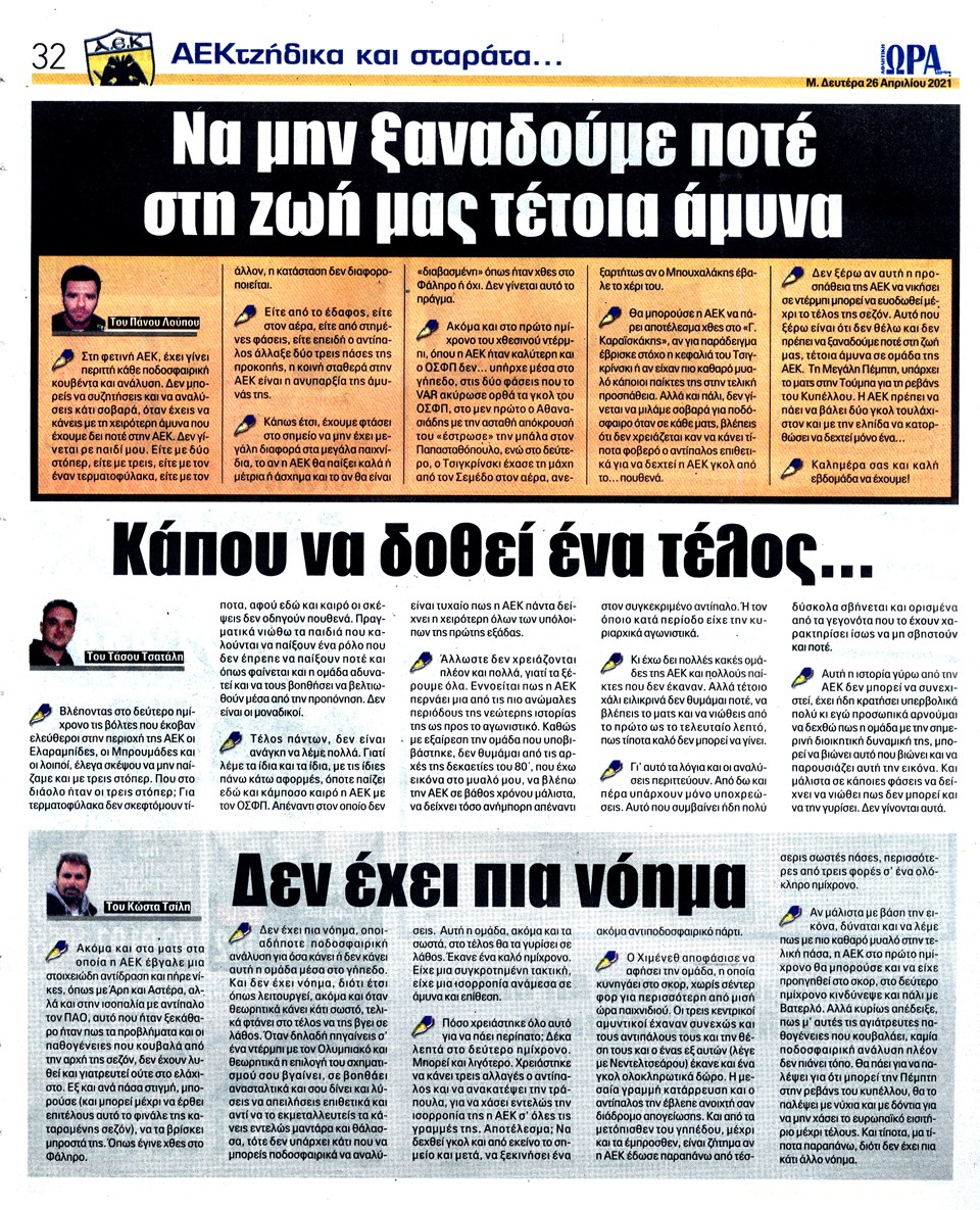ΑΘΛΗΤΙΚΗ ΩΡΑ ΤΩΝ ΣΠΟΡ - 26 Απριλίου 2021