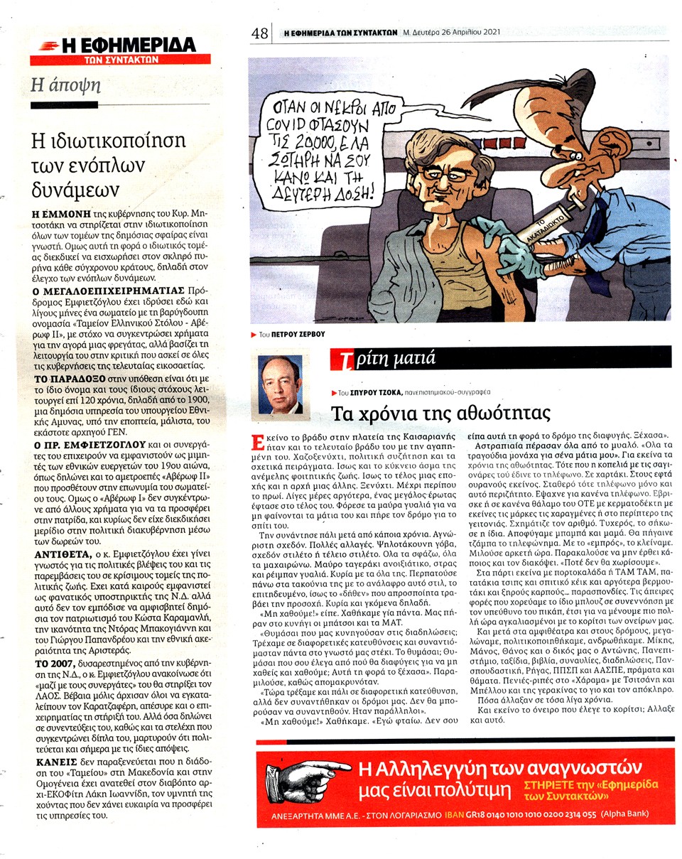 Η ΕΦΗΜΕΡΙΔΑ ΤΩΝ ΣΥΝΤΑΚΤΩΝ - 26 Απριλίου 2021