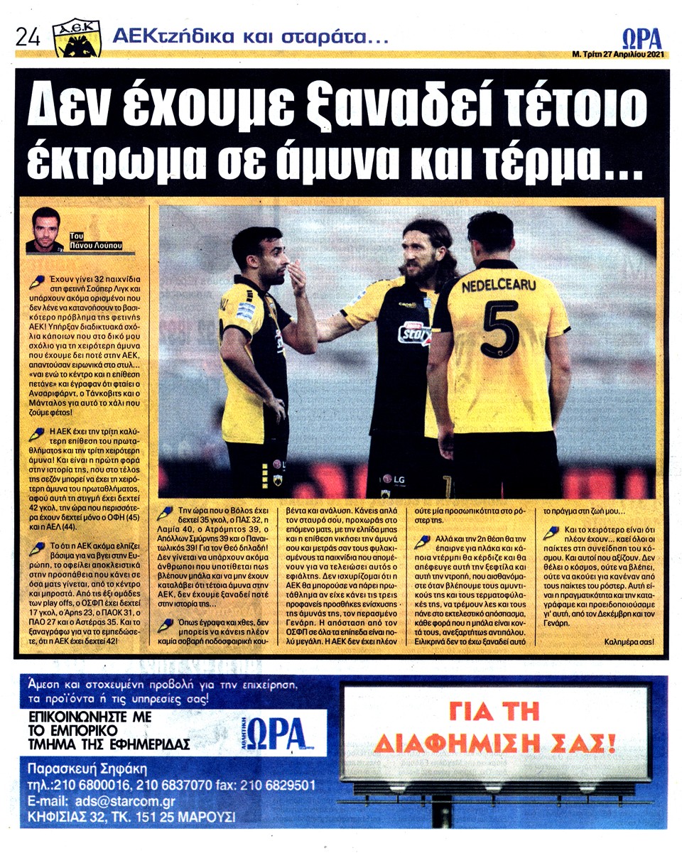 ΑΘΛΗΤΙΚΗ ΩΡΑ ΤΩΝ ΣΠΟΡ - 27 Απριλίου 2021