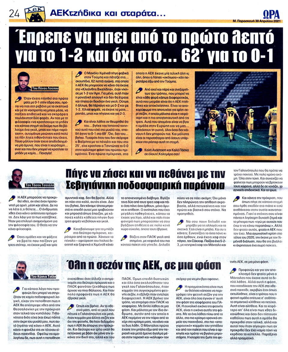 ΑΘΛΗΤΙΚΗ ΩΡΑ ΤΩΝ ΣΠΟΡ - 30 Απριλίου 2021