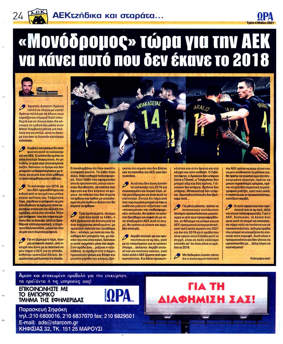 ΑΘΛΗΤΙΚΗ ΩΡΑ ΤΩΝ ΣΠΟΡ - 4 Μαΐου 2021