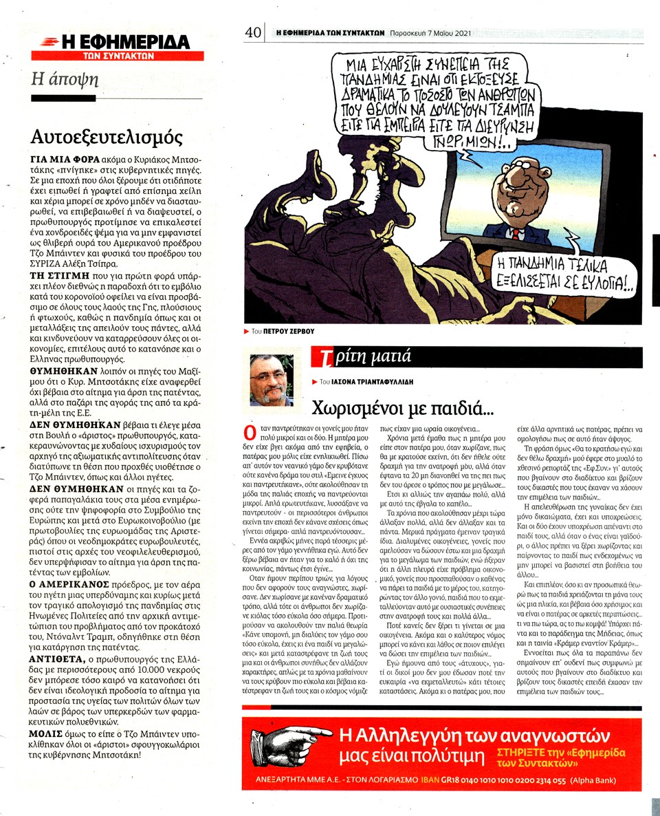 Η ΕΦΗΜΕΡΙΔΑ ΤΩΝ ΣΥΝΤΑΚΤΩΝ - 7 Μαΐου 2021