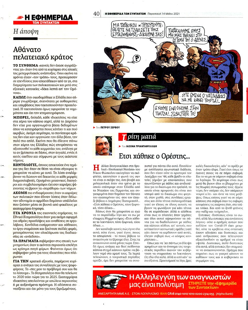 Η ΕΦΗΜΕΡΙΔΑ ΤΩΝ ΣΥΝΤΑΚΤΩΝ - 14 Μαΐου 2021