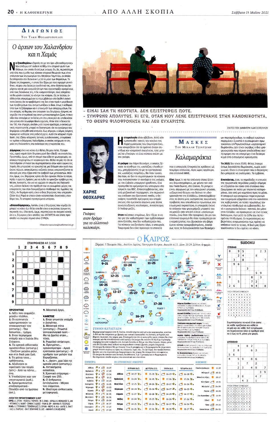 ΚΑΘΗΜΕΡΙΝΗ - 15 Μαΐου 2021