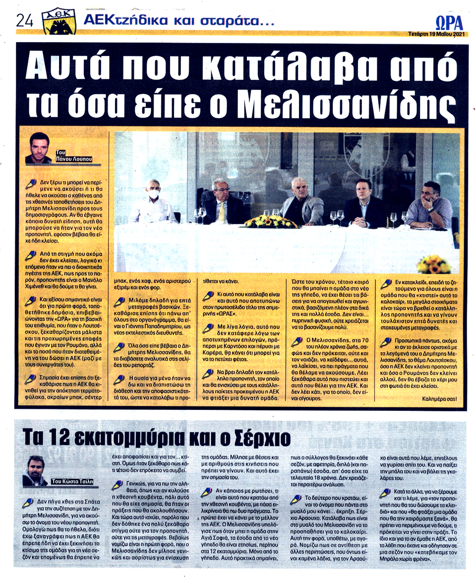 ΑΘΛΗΤΙΚΗ ΩΡΑ ΤΩΝ ΣΠΟΡ - 19 Μαΐου 2021