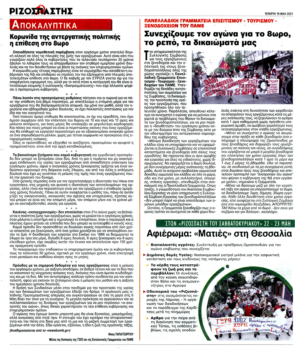 ΡΙΖΟΣΠΑΣΤΗΣ - 19 Μαΐου 2021