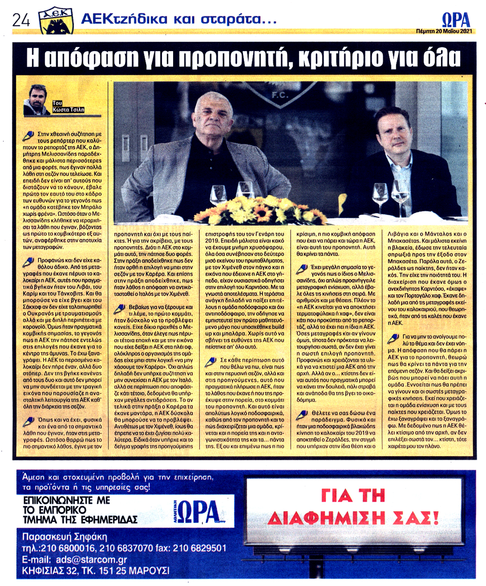 ΑΘΛΗΤΙΚΗ ΩΡΑ ΤΩΝ ΣΠΟΡ - 20 Μαΐου 2021