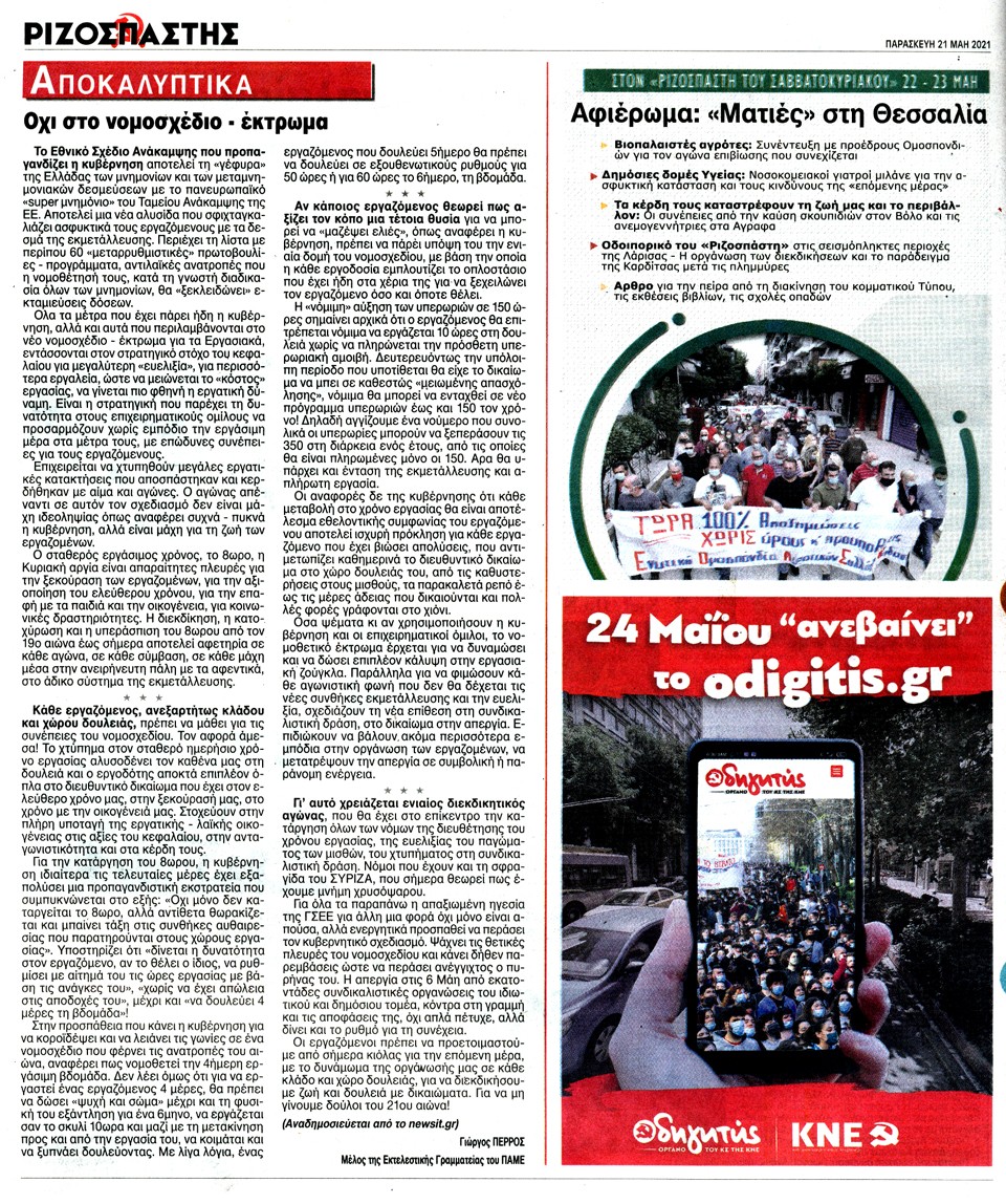 ΡΙΖΟΣΠΑΣΤΗΣ - 21 Μαΐου 2021