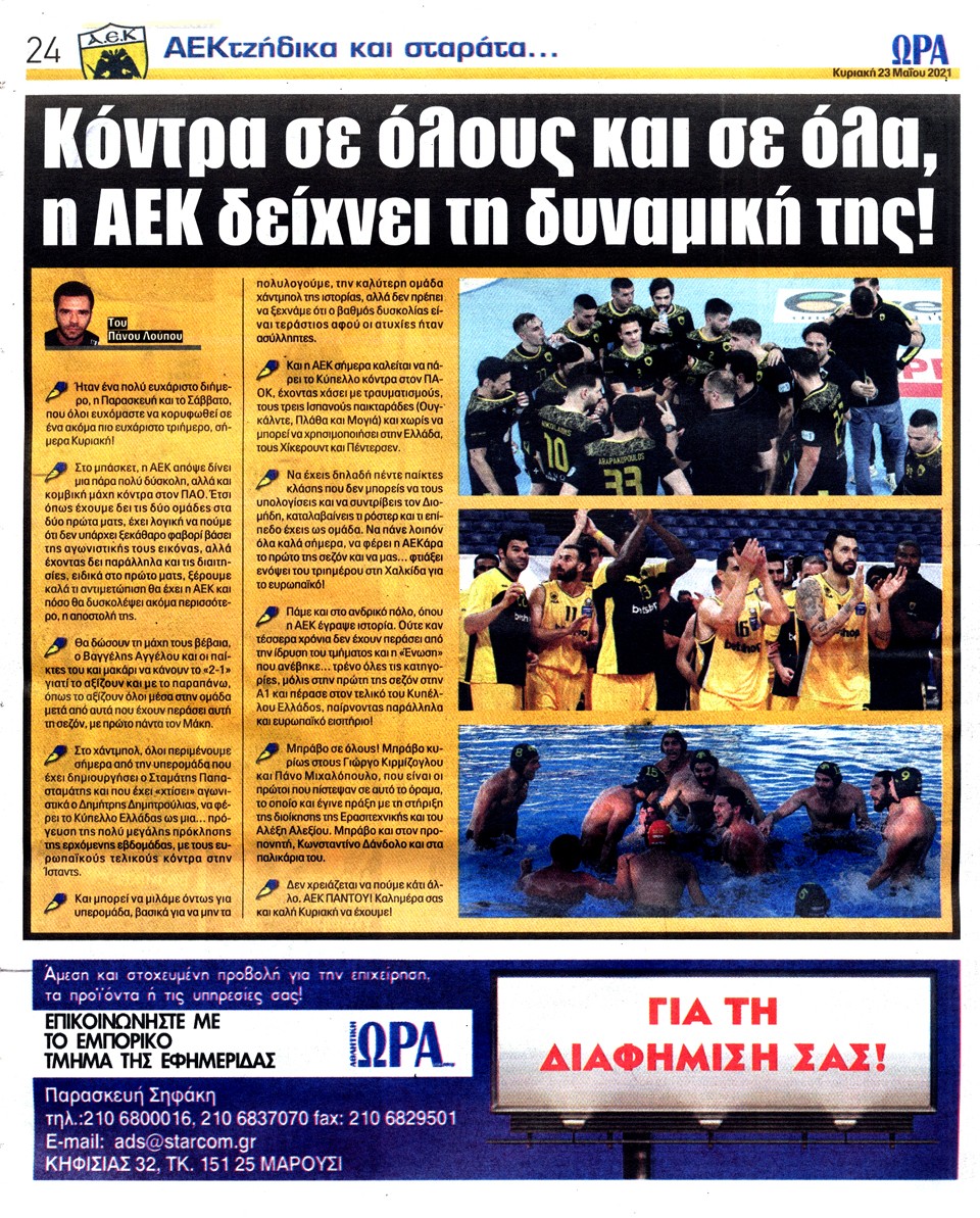 ΑΘΛΗΤΙΚΗ ΩΡΑ ΤΩΝ ΣΠΟΡ - 23 Μαΐου 2021