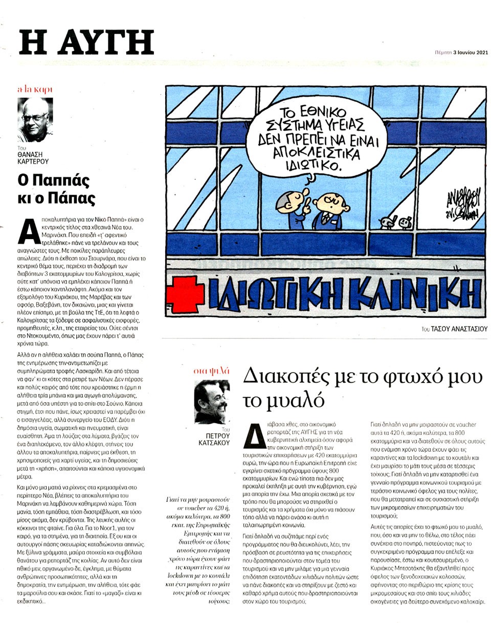 Η ΑΥΓΗ - 3 Ιουνίου 2021