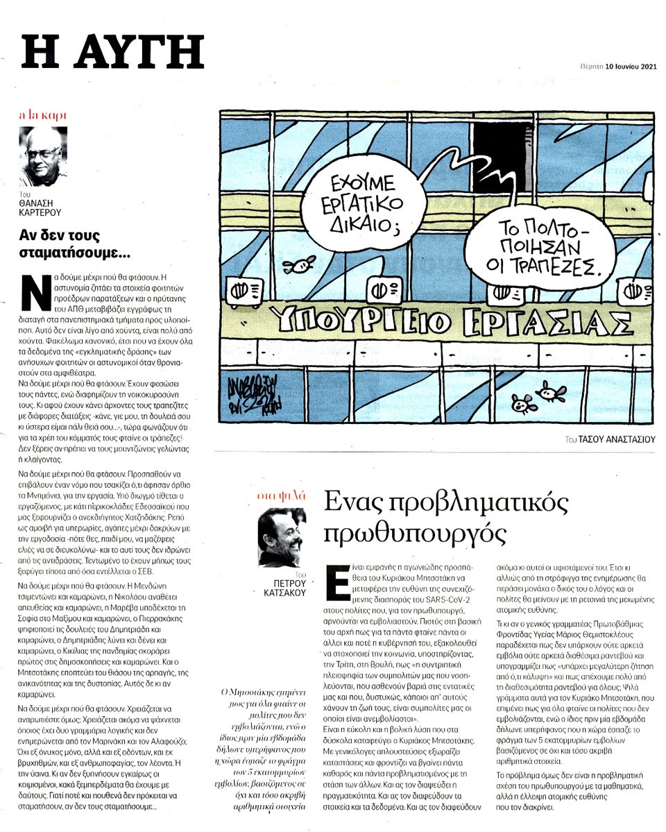 Η ΑΥΓΗ - 10 Ιουνίου 2021
