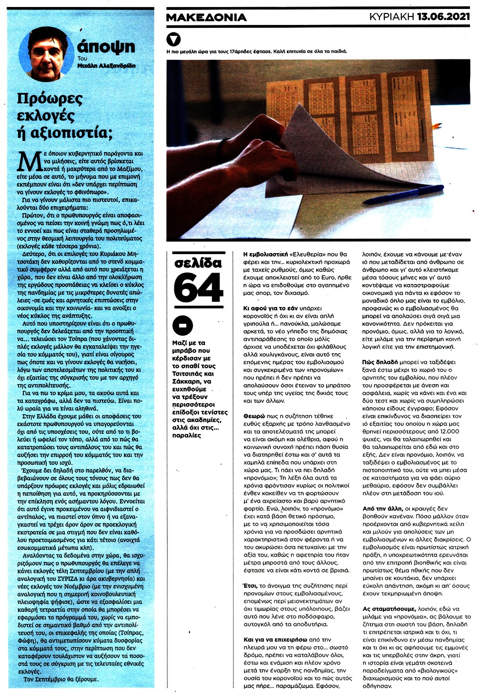 ΜΑΚΕΔΟΝΙΑ ΤΗΣ ΚΥΡΙΑΚΗΣ - 13 Ιουνίου 2021