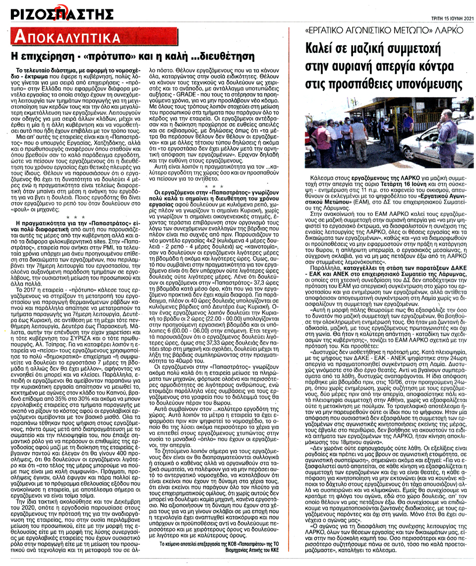 ΡΙΖΟΣΠΑΣΤΗΣ - 15 Ιουνίου 2021