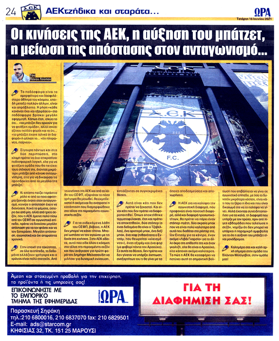 ΑΘΛΗΤΙΚΗ ΩΡΑ ΤΩΝ ΣΠΟΡ - 16 Ιουνίου 2021