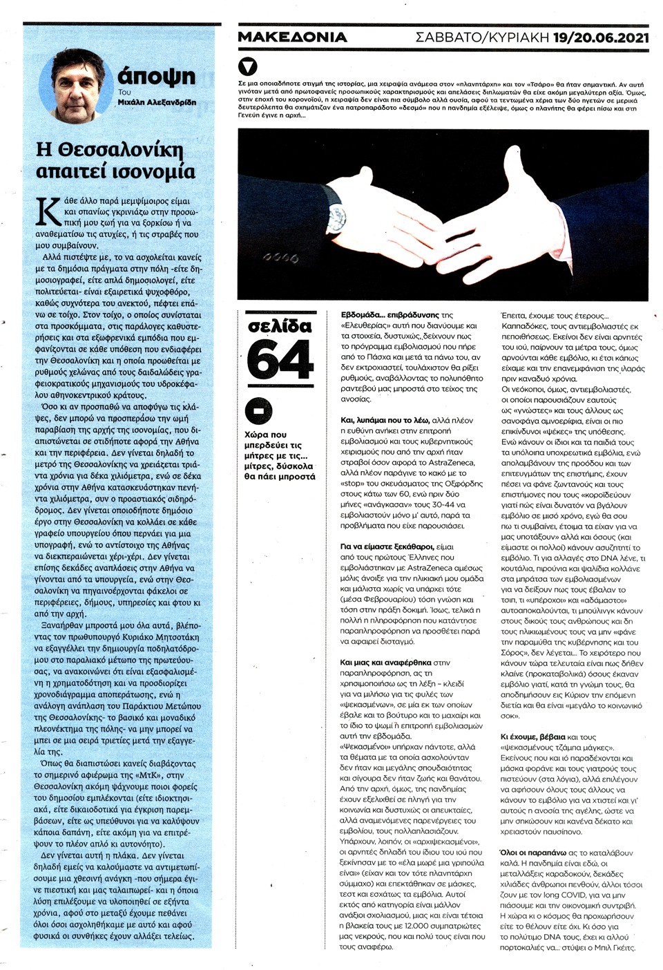ΜΑΚΕΔΟΝΙΑ ΤΗΣ ΚΥΡΙΑΚΗΣ - 19 Ιουνίου 2021