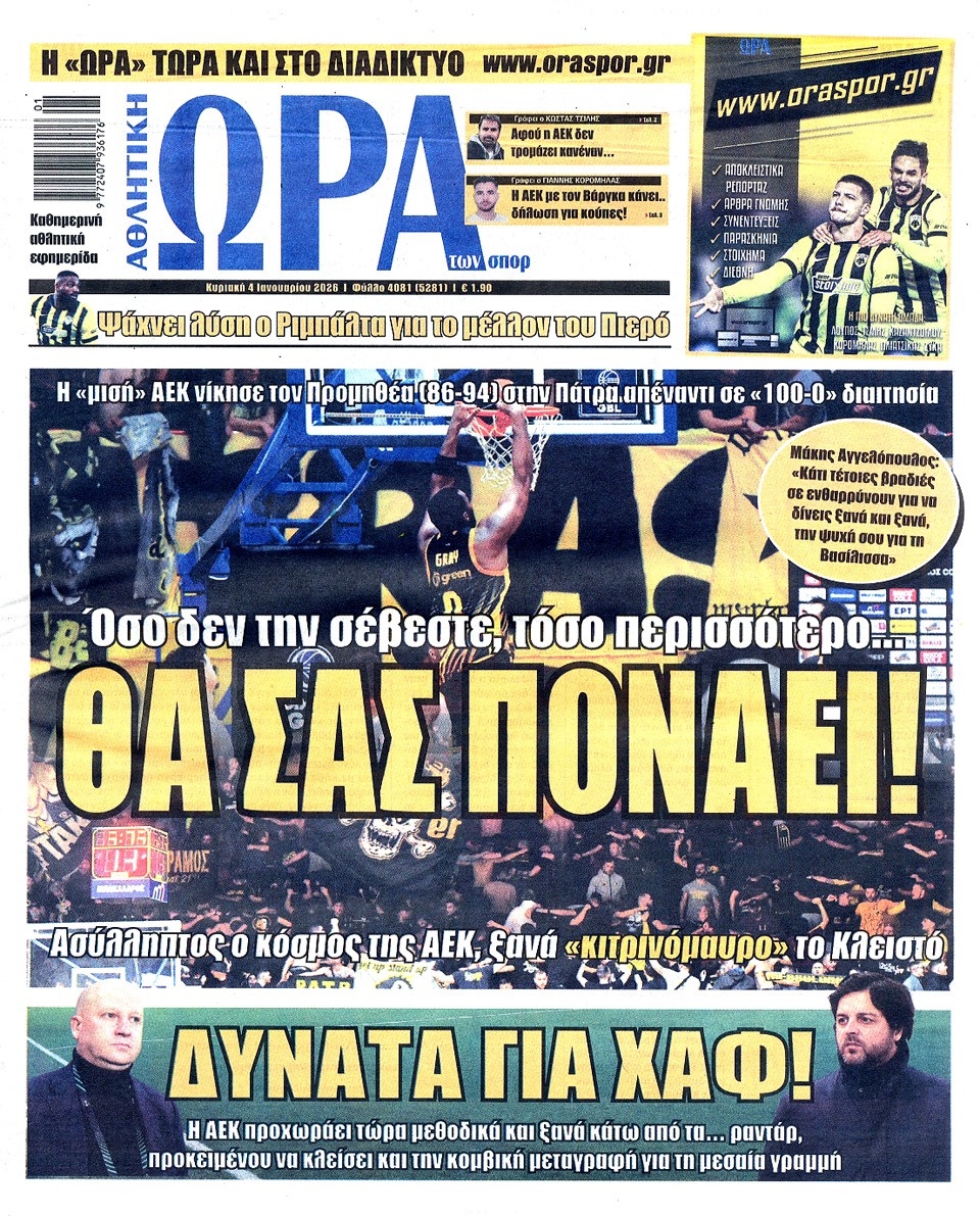 ΑΘΛΗΤΙΚΗ ΩΡΑ ΤΩΝ ΣΠΟΡ - 04 Ιανουαρίου 2026