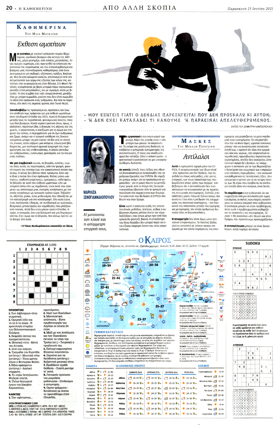 ΚΑΘΗΜΕΡΙΝΗ - 25 Ιουνίου 2021