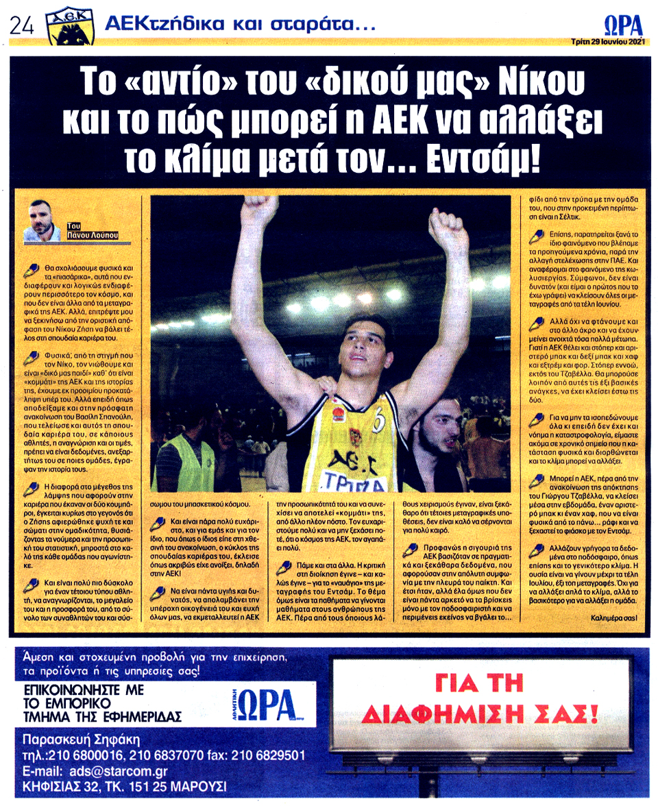 ΑΘΛΗΤΙΚΗ ΩΡΑ ΤΩΝ ΣΠΟΡ - 29 Ιουνίου 2021