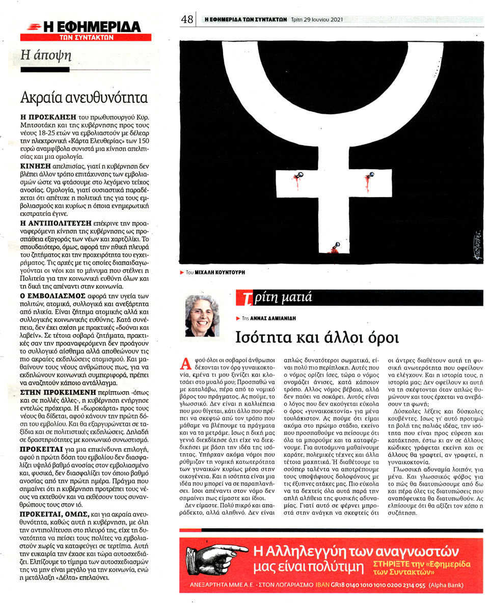 Η ΕΦΗΜΕΡΙΔΑ ΤΩΝ ΣΥΝΤΑΚΤΩΝ - 29 Ιουνίου 2021
