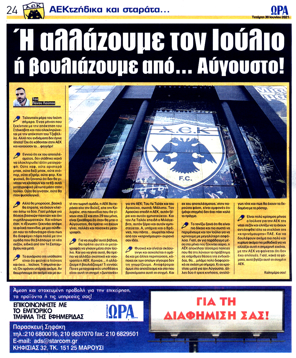 ΑΘΛΗΤΙΚΗ ΩΡΑ ΤΩΝ ΣΠΟΡ - 30 Ιουνίου 2021