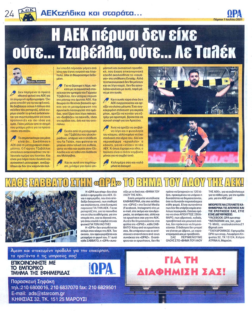 ΑΘΛΗΤΙΚΗ ΩΡΑ ΤΩΝ ΣΠΟΡ - 1 Ιουλίου 2021