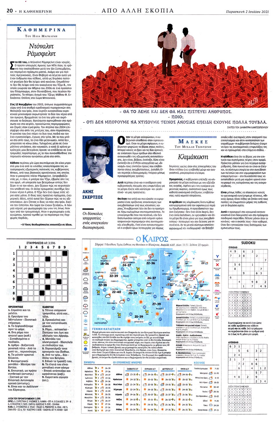ΚΑΘΗΜΕΡΙΝΗ - 2 Ιουλίου 2021