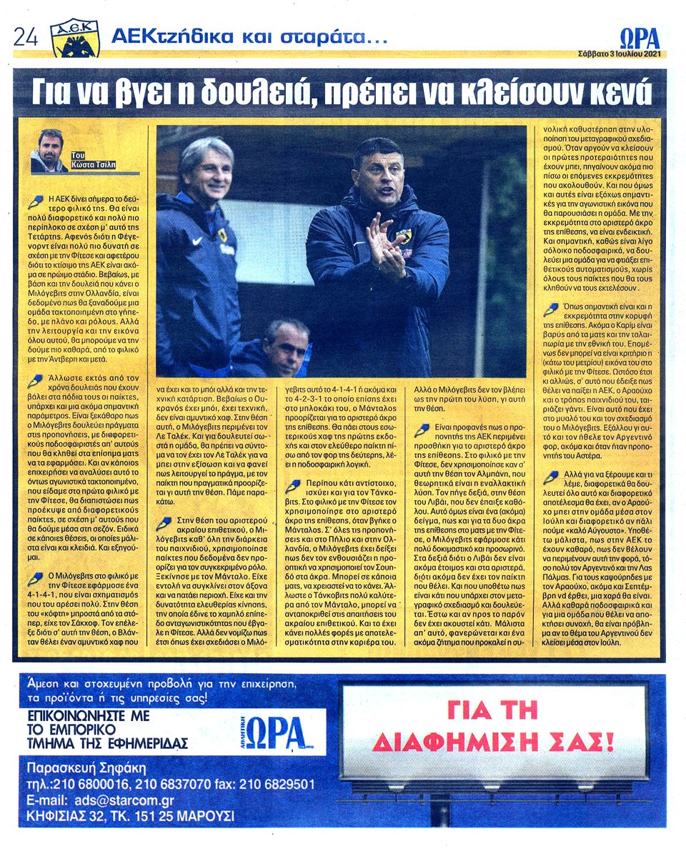 ΑΘΛΗΤΙΚΗ ΩΡΑ ΤΩΝ ΣΠΟΡ - 3 Ιουλίου 2021