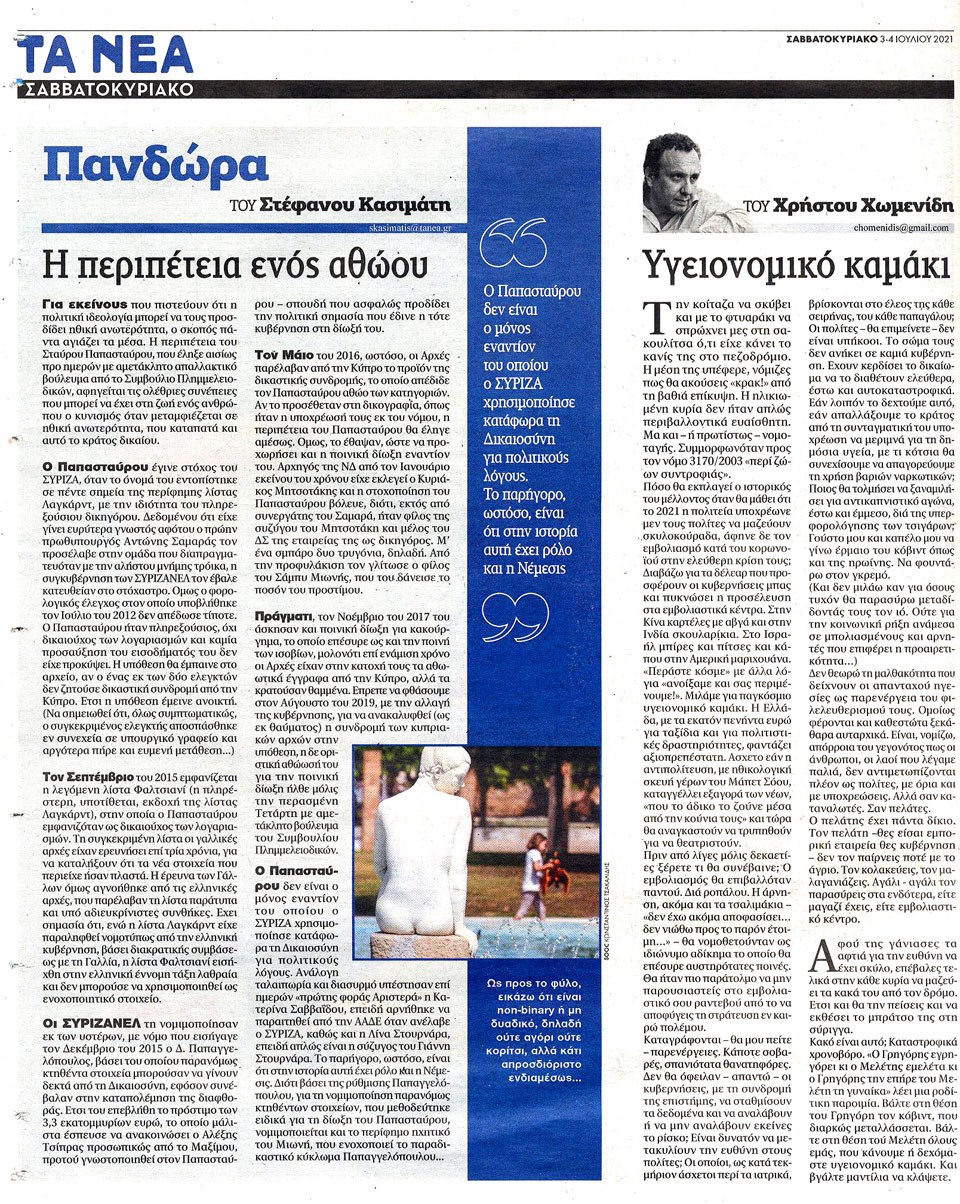 ΤΑ ΝΕΑ - 3 Ιουλίου 2021