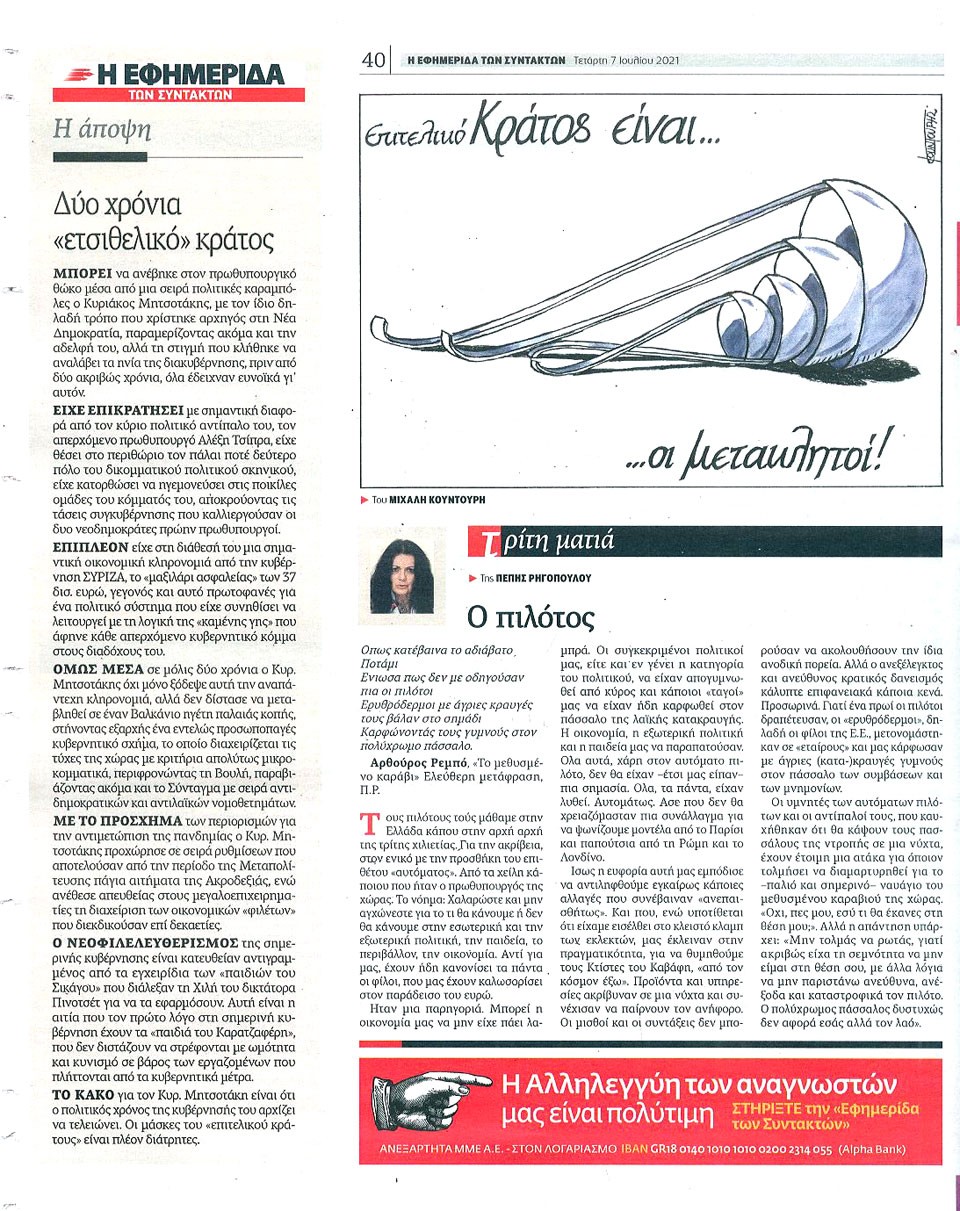 Η ΕΦΗΜΕΡΙΔΑ ΤΩΝ ΣΥΝΤΑΚΤΩΝ - 7 Ιουλίου 2021
