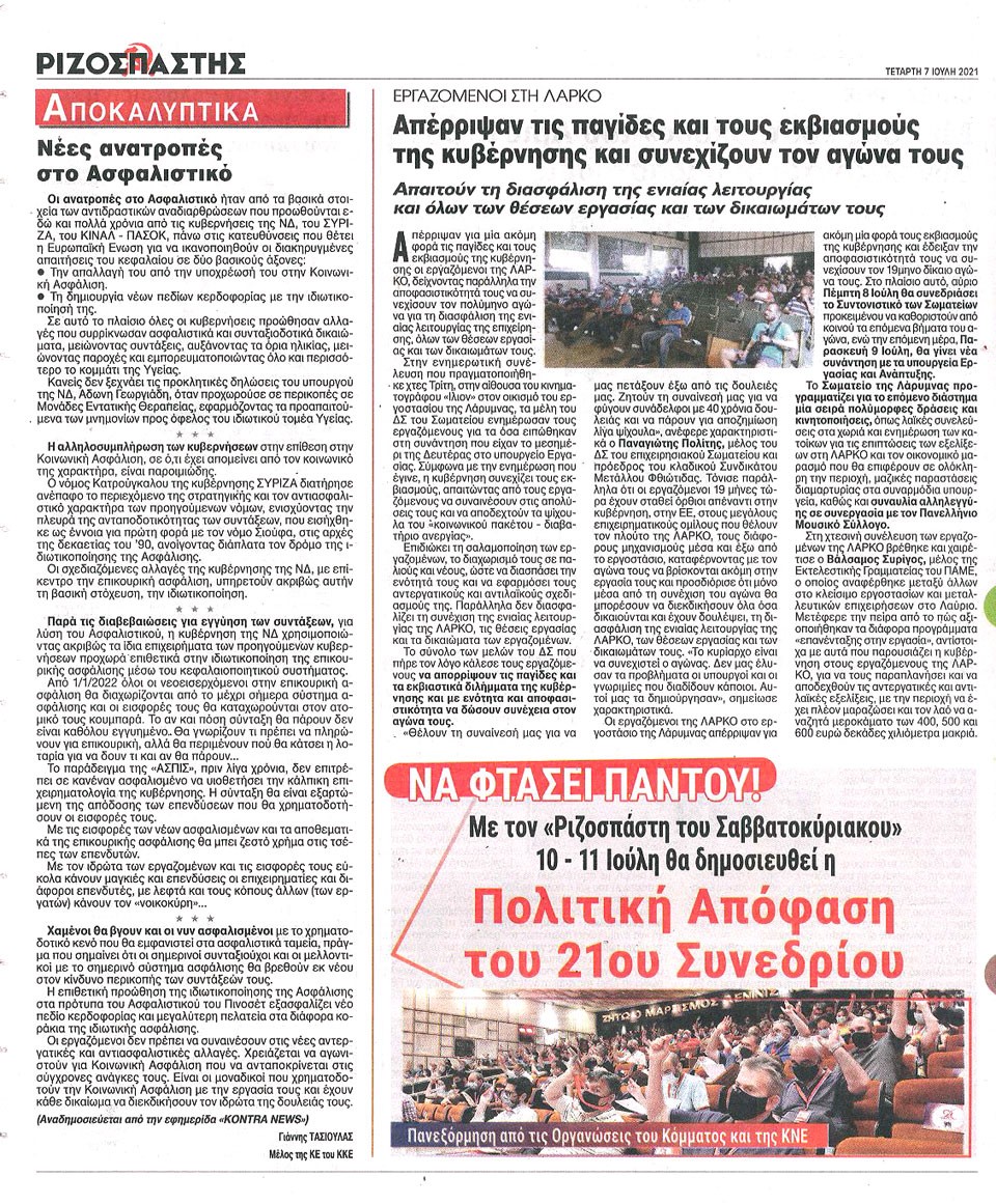 ΡΙΖΟΣΠΑΣΤΗΣ - 7 Ιουλίου 2021