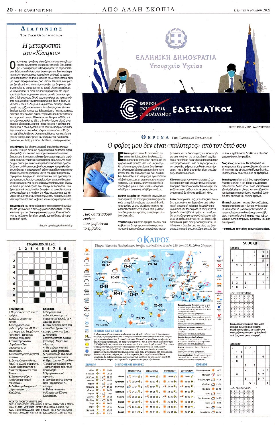 ΚΑΘΗΜΕΡΙΝΗ - 8 Ιουλίου 2021