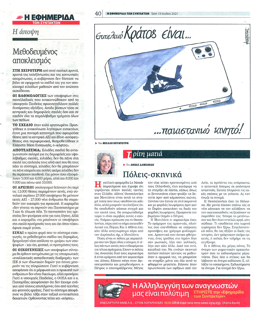 Η ΕΦΗΜΕΡΙΔΑ ΤΩΝ ΣΥΝΤΑΚΤΩΝ - 13 Ιουλίου 2021