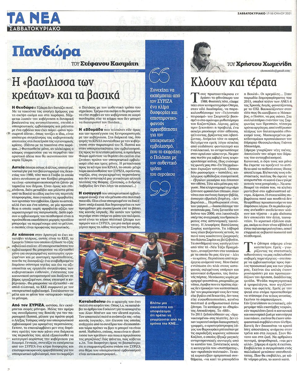 ΤΑ ΝΕΑ - 17 Ιουλίου 2021