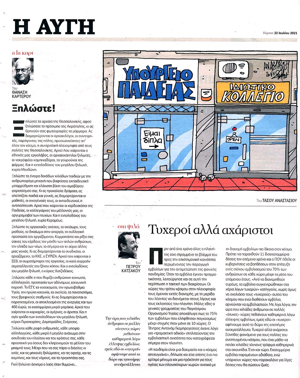 Η ΑΥΓΗ - 22 Ιουλίου 2021