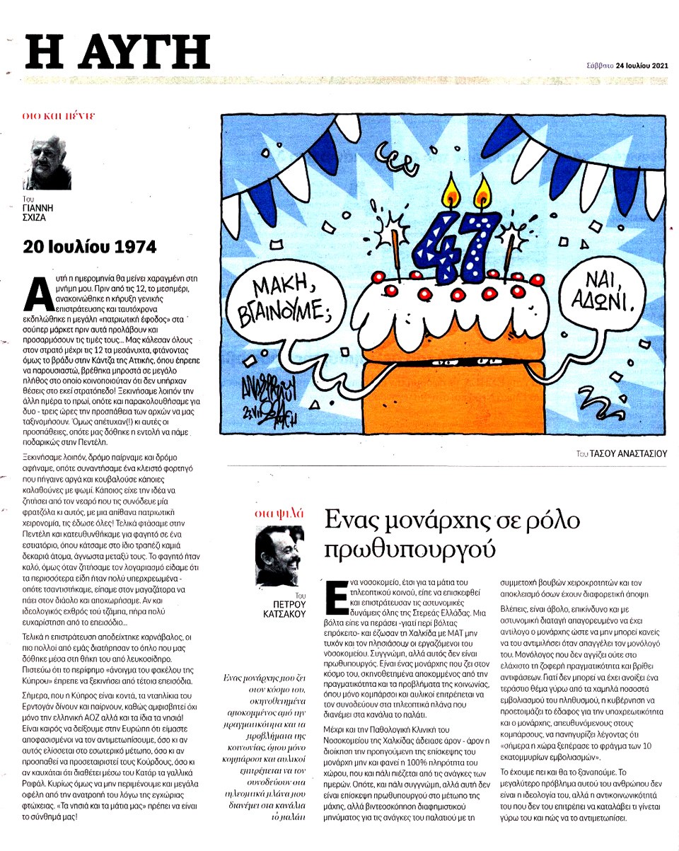 Η ΑΥΓΗ - 24 Ιουλίου 2021