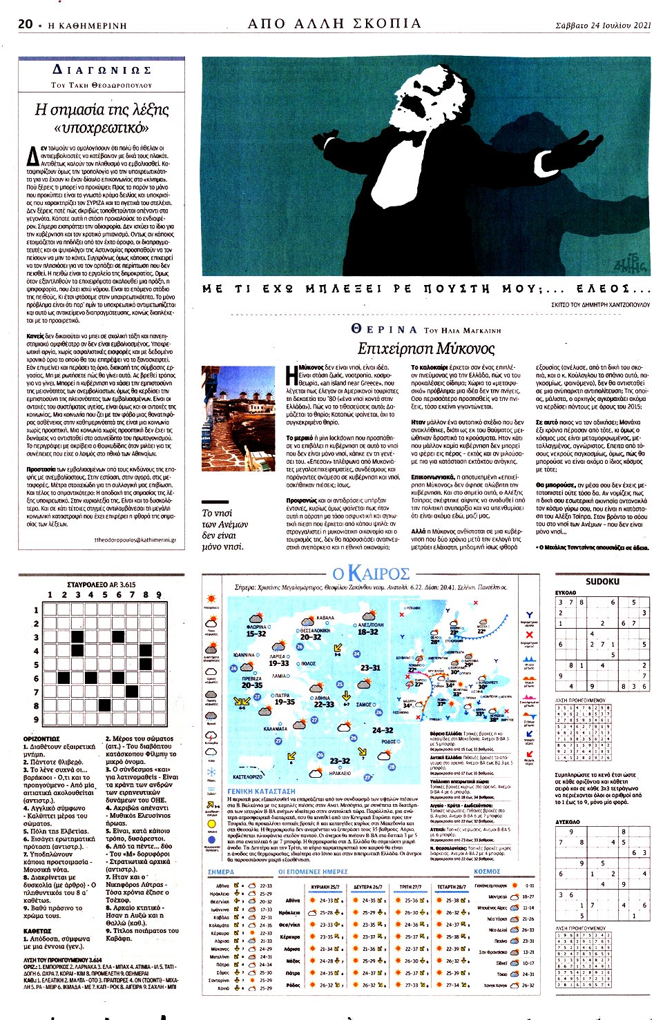 ΚΑΘΗΜΕΡΙΝΗ - 24 Ιουλίου 2021