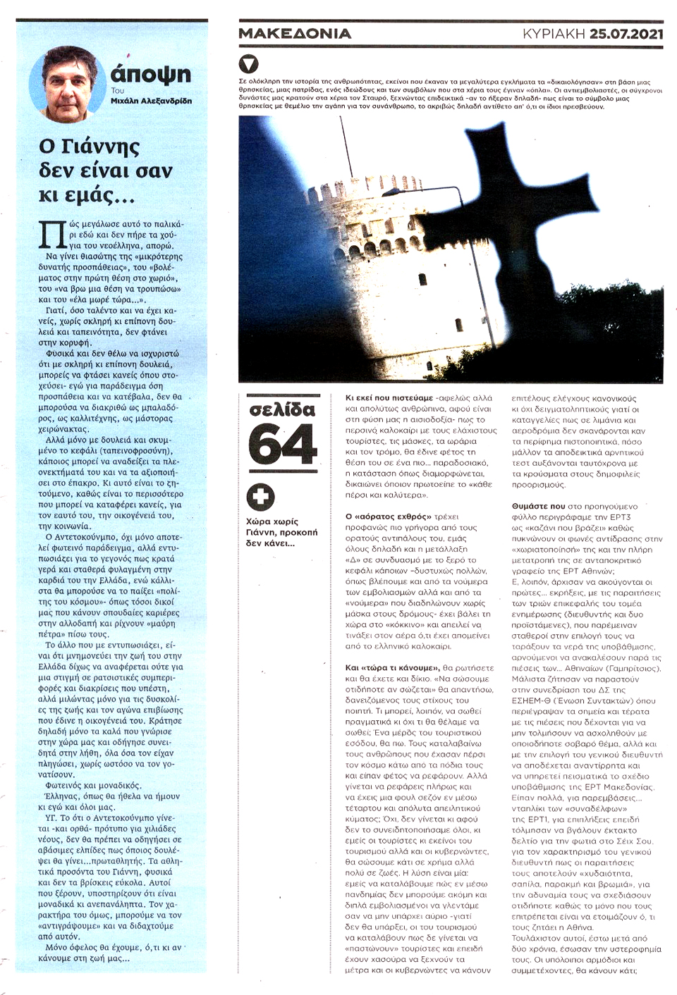 ΜΑΚΕΔΟΝΙΑ ΤΗΣ ΚΥΡΙΑΚΗΣ - 25 Ιουλίου 2021
