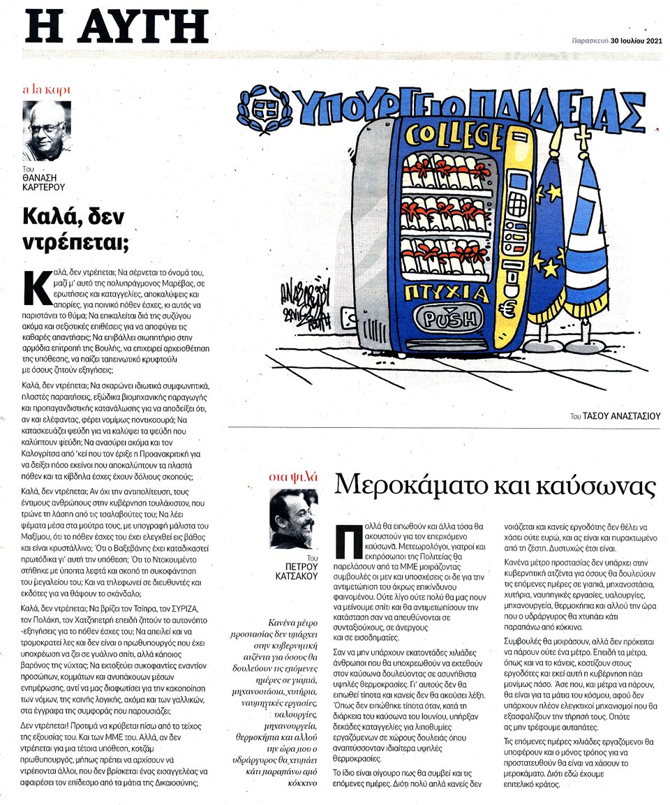 Η ΑΥΓΗ - 30 Ιουλίου 2021
