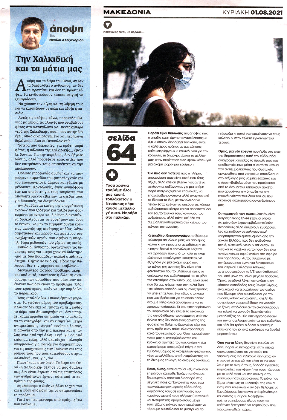 ΜΑΚΕΔΟΝΙΑ ΤΗΣ ΚΥΡΙΑΚΗΣ - 1 Αυγούστου 2021