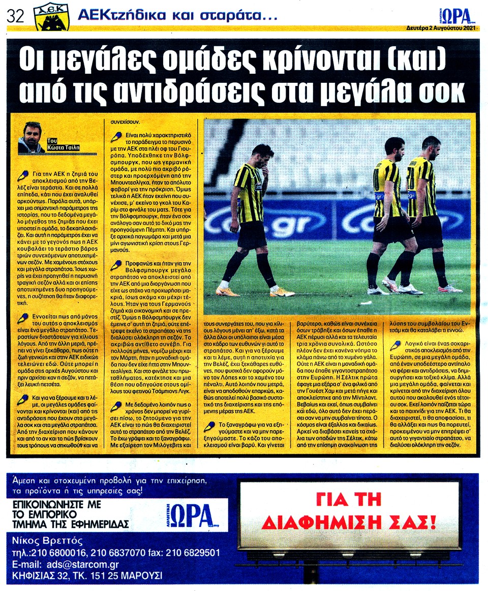 ΑΘΛΗΤΙΚΗ ΩΡΑ ΤΩΝ ΣΠΟΡ - 2 Αυγούστου 2021