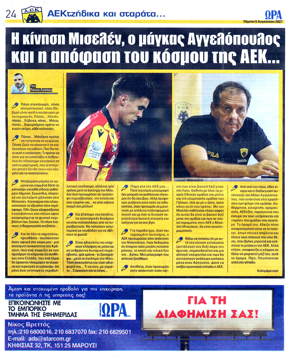 ΑΘΛΗΤΙΚΗ ΩΡΑ ΤΩΝ ΣΠΟΡ - 5 Αυγούστου 2021