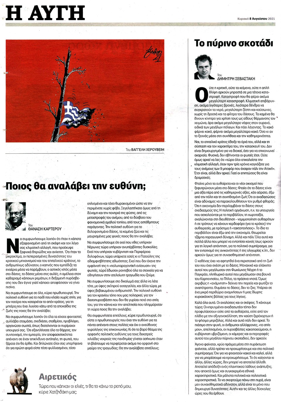 Η ΑΥΓΗ ΤΗΣ ΚΥΡΙΑΚΗΣ - 8 Αυγούστου 2021