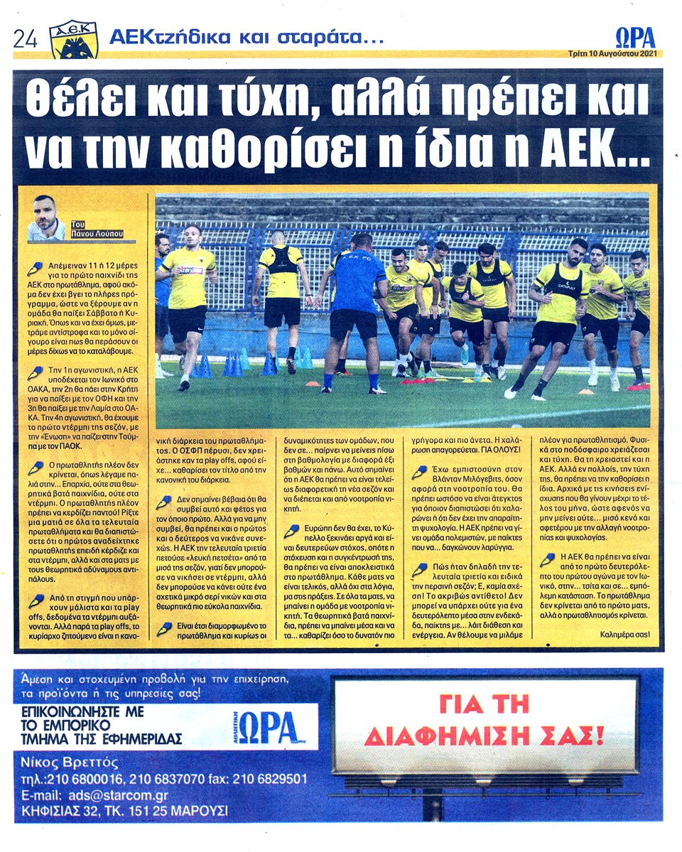 ΑΘΛΗΤΙΚΗ ΩΡΑ ΤΩΝ ΣΠΟΡ - 10 Αυγούστου 2021