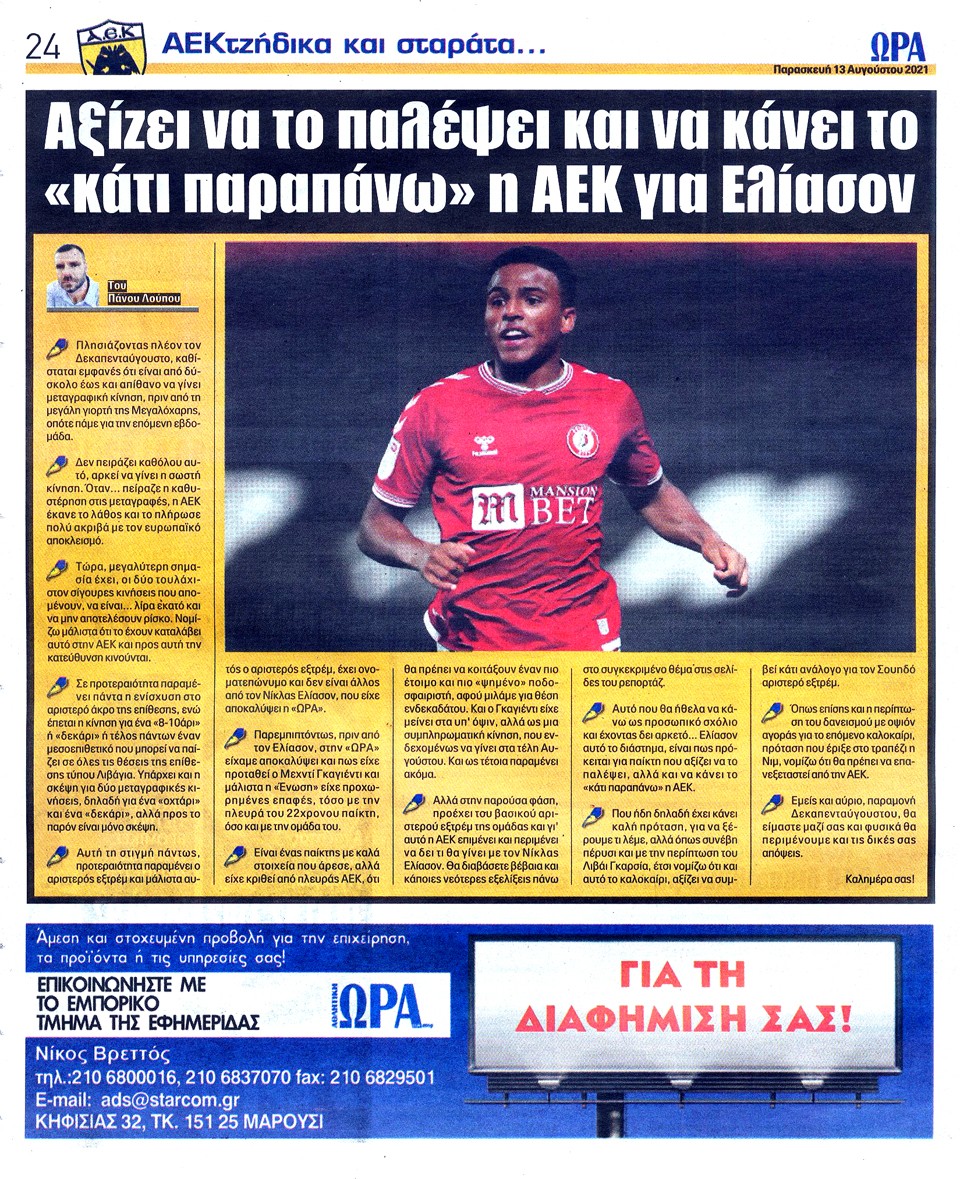 ΑΘΛΗΤΙΚΗ ΩΡΑ ΤΩΝ ΣΠΟΡ - 13 Αυγούστου 2021