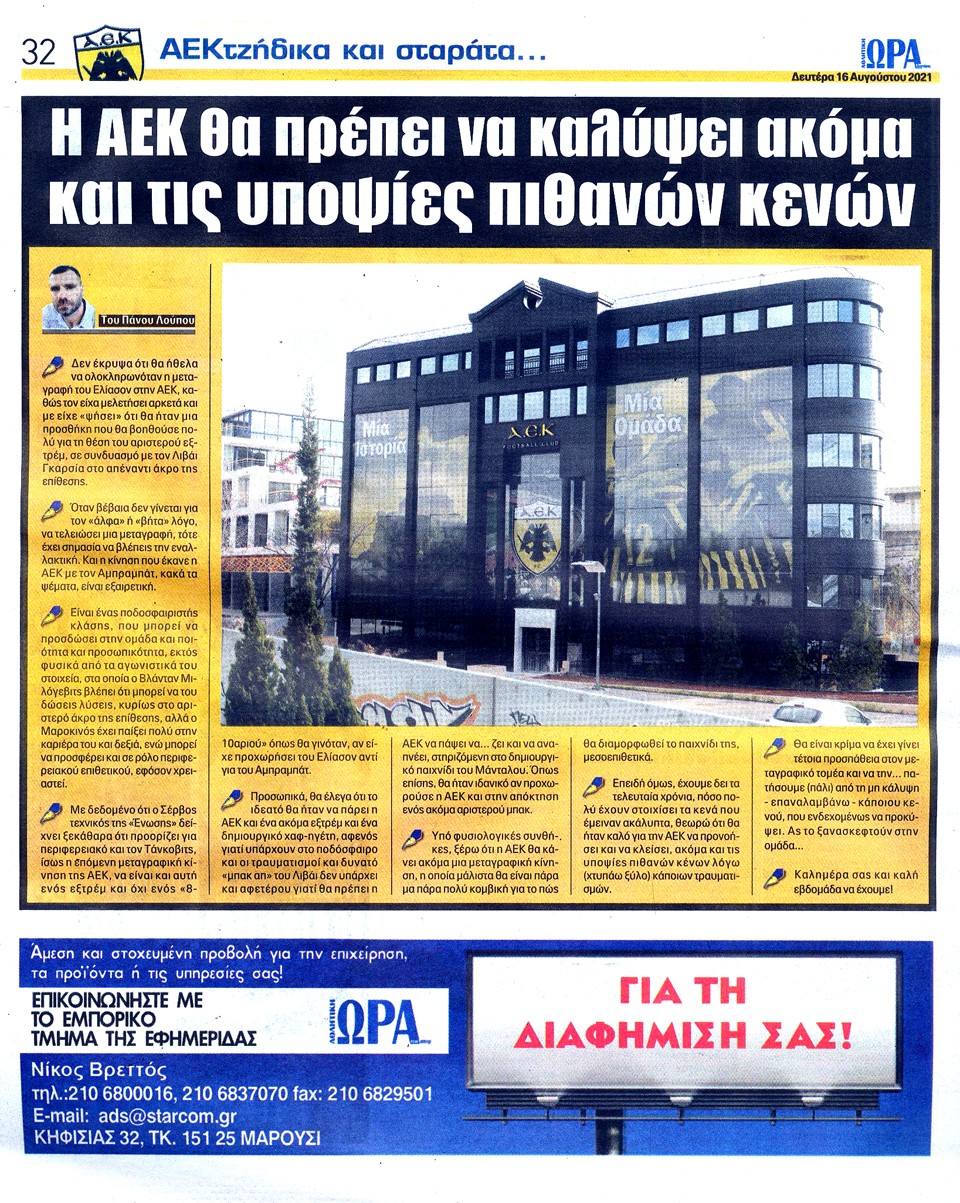 ΑΘΛΗΤΙΚΗ ΩΡΑ ΤΩΝ ΣΠΟΡ - 16 Αυγούστου 2021